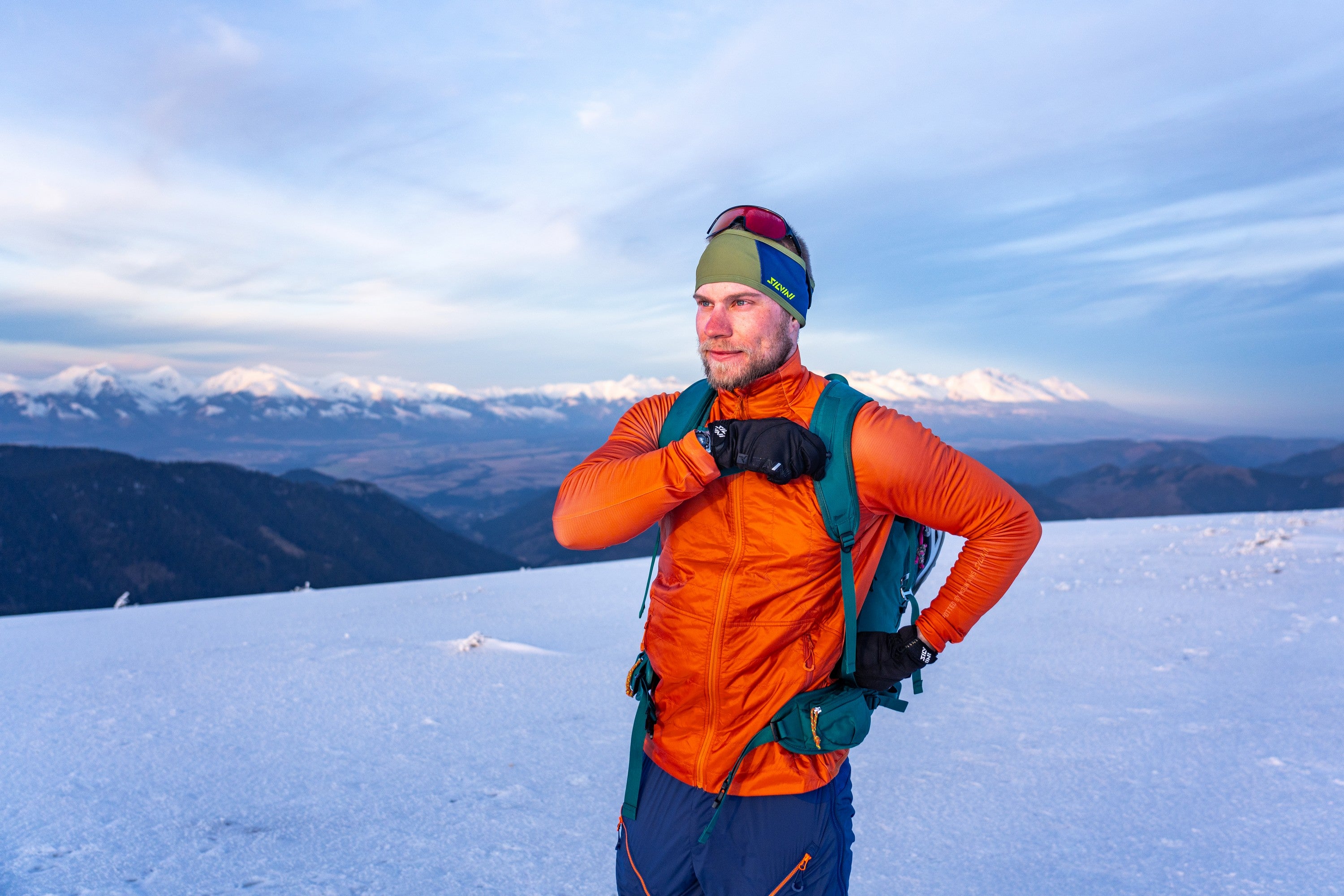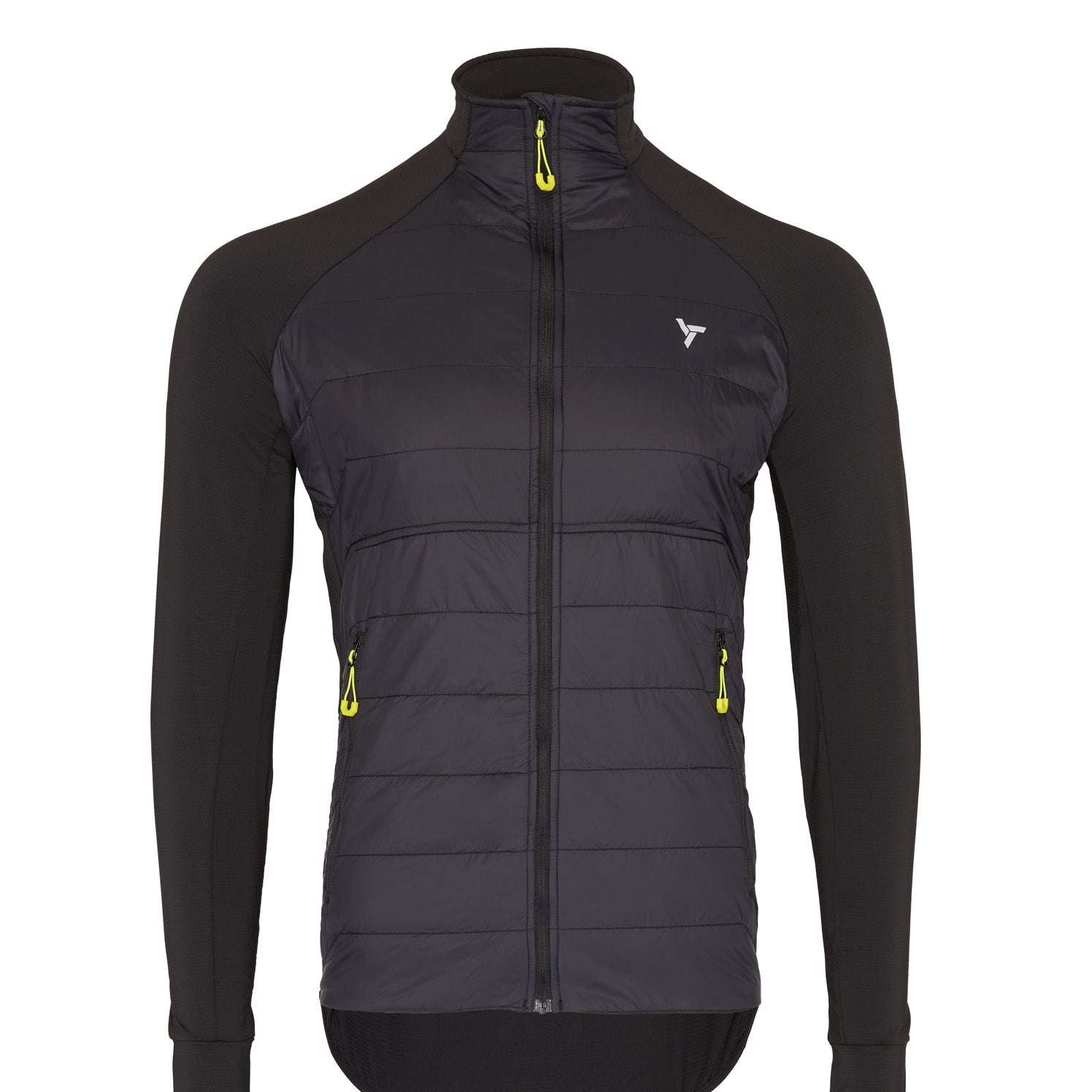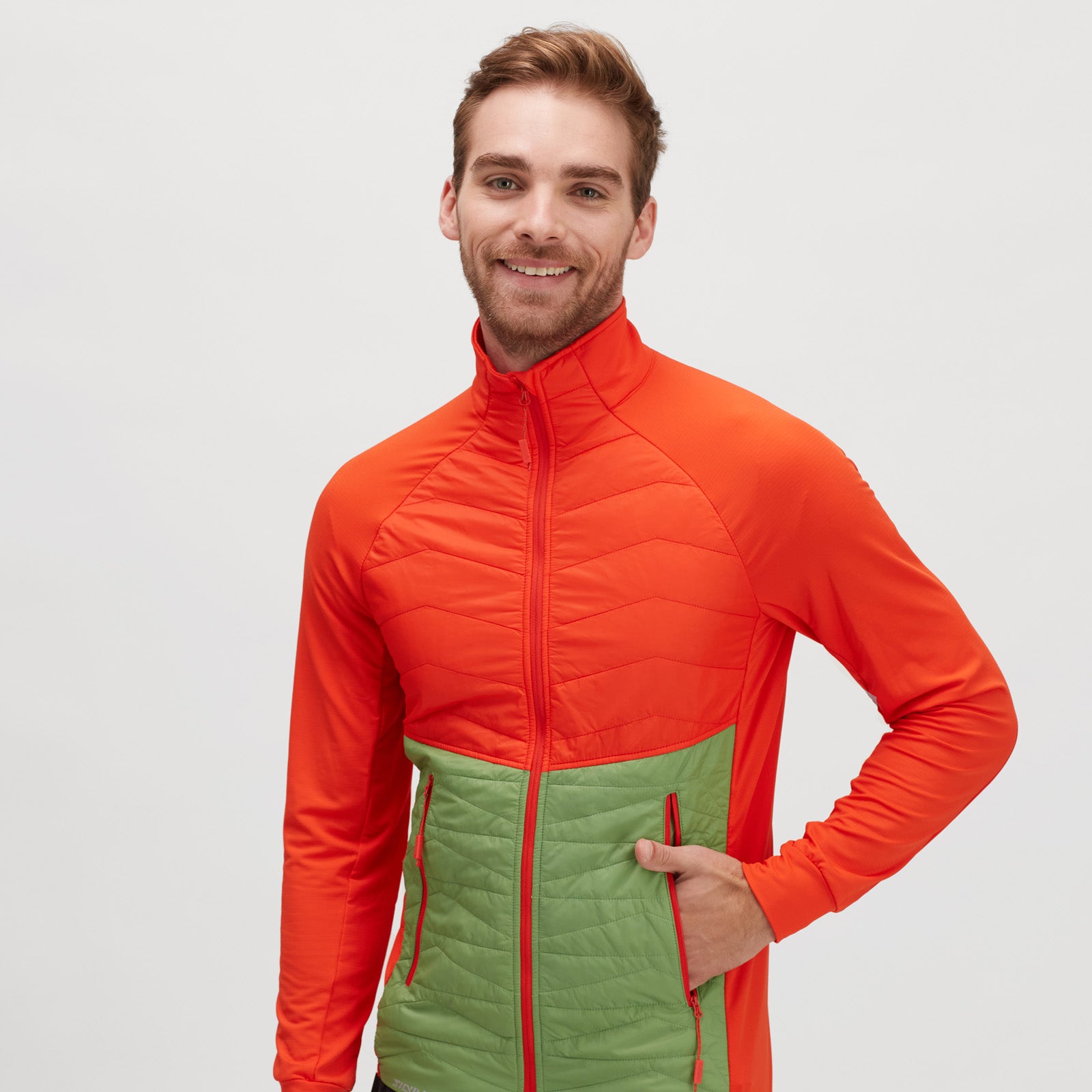 Men’s hoodie in elastic QuatroFLEX Therm, front insulated with Primaloft, with two zip pockets. Perfect as a mid-layer for ski touring, cross-country skiing, and other sports.