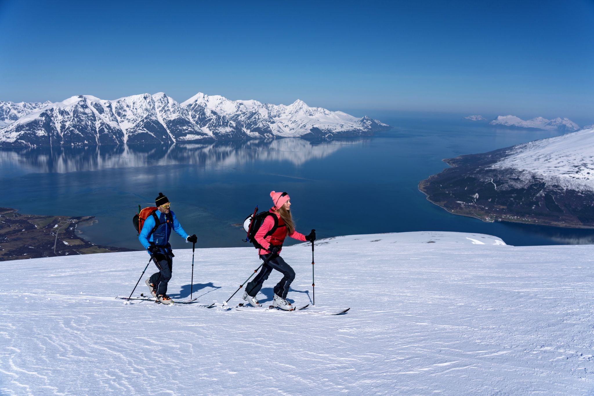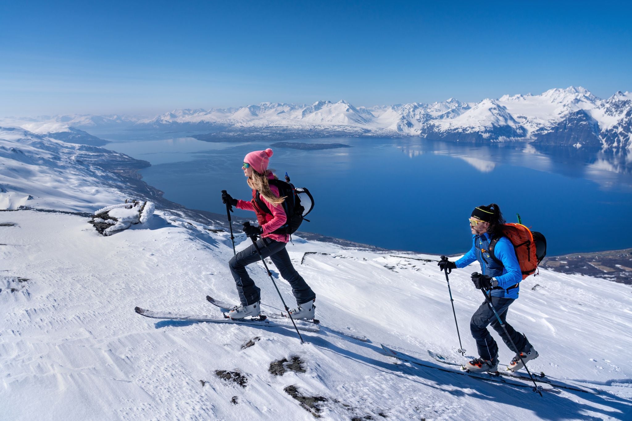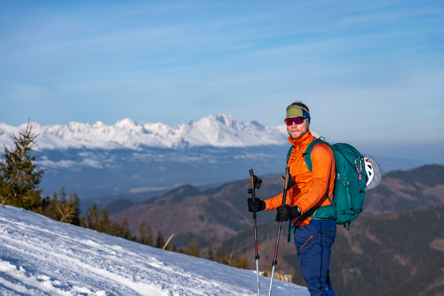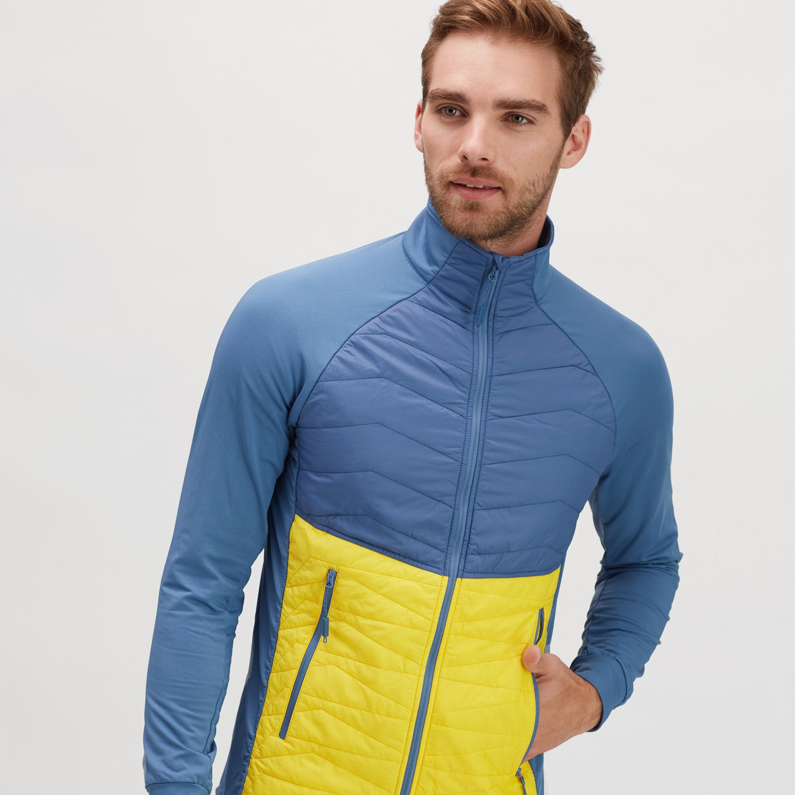 Men’s hoodie in elastic QuatroFLEX Therm, front insulated with Primaloft, with two zip pockets. Perfect as a mid-layer for ski touring, cross-country skiing, and other sports.