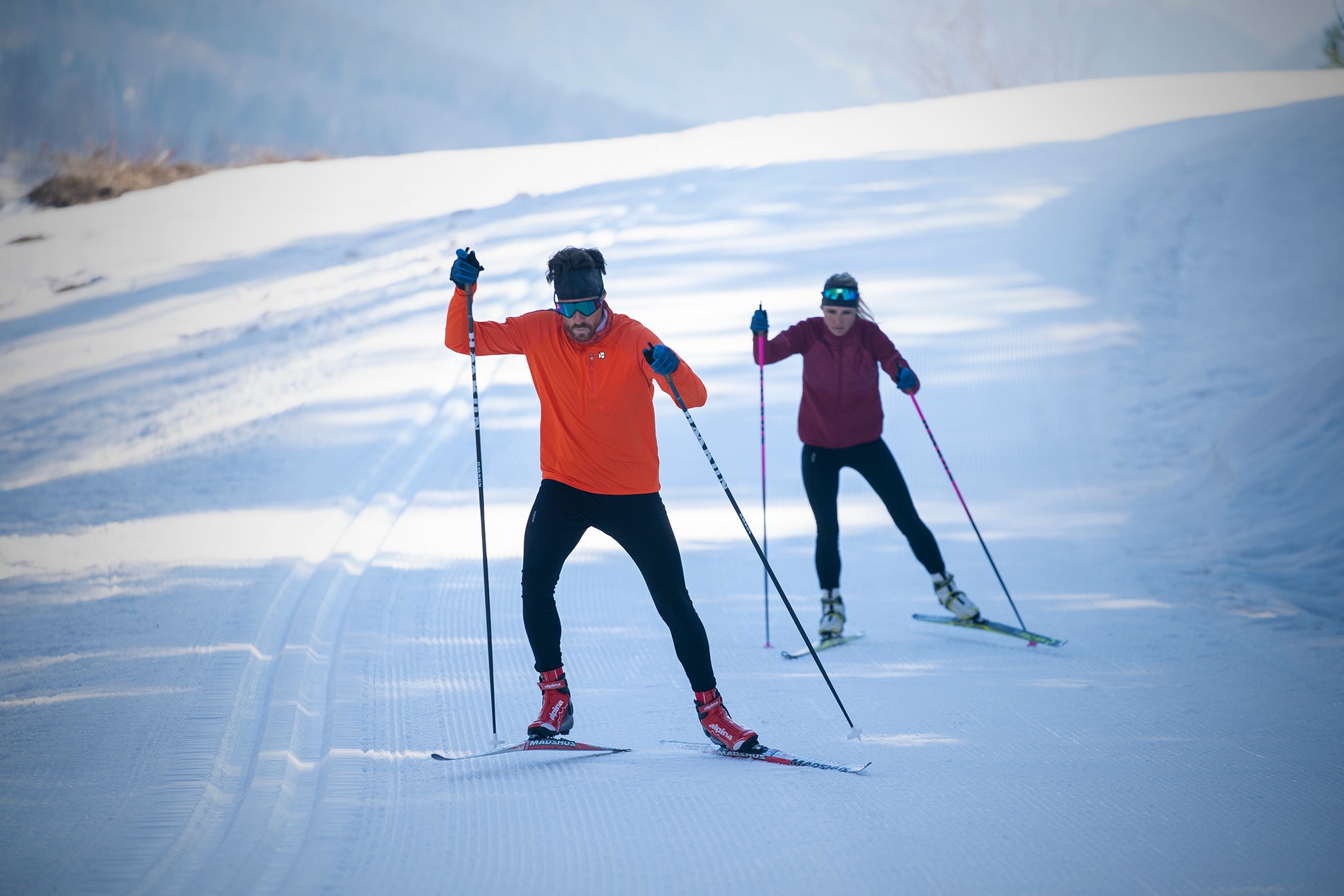 Movenza are men’s membrane pants for cross-country skiing and outdoor activities, offering warmth, breathability, wind protection, reflective details, and comfort on every move.