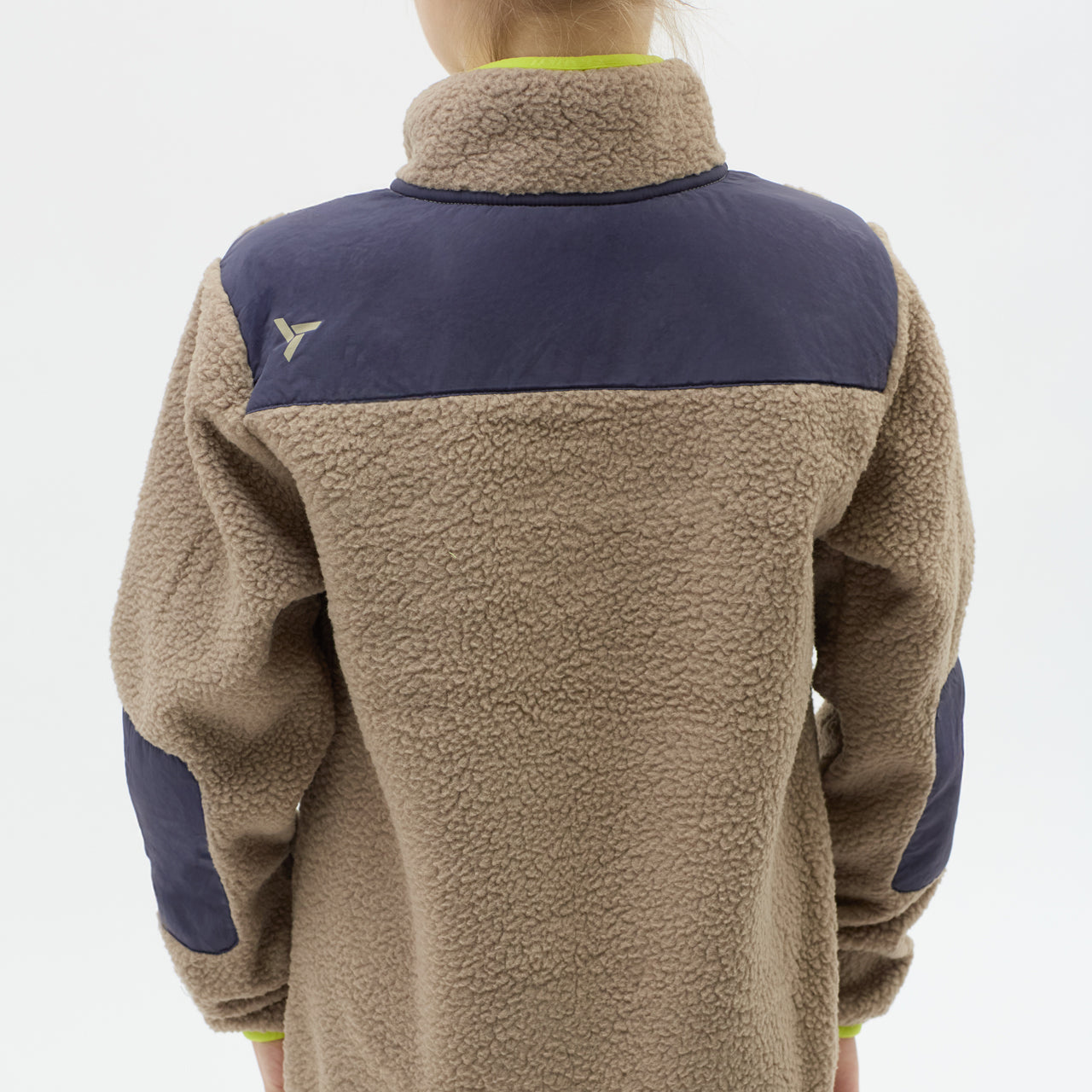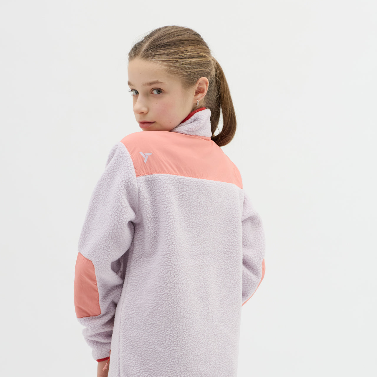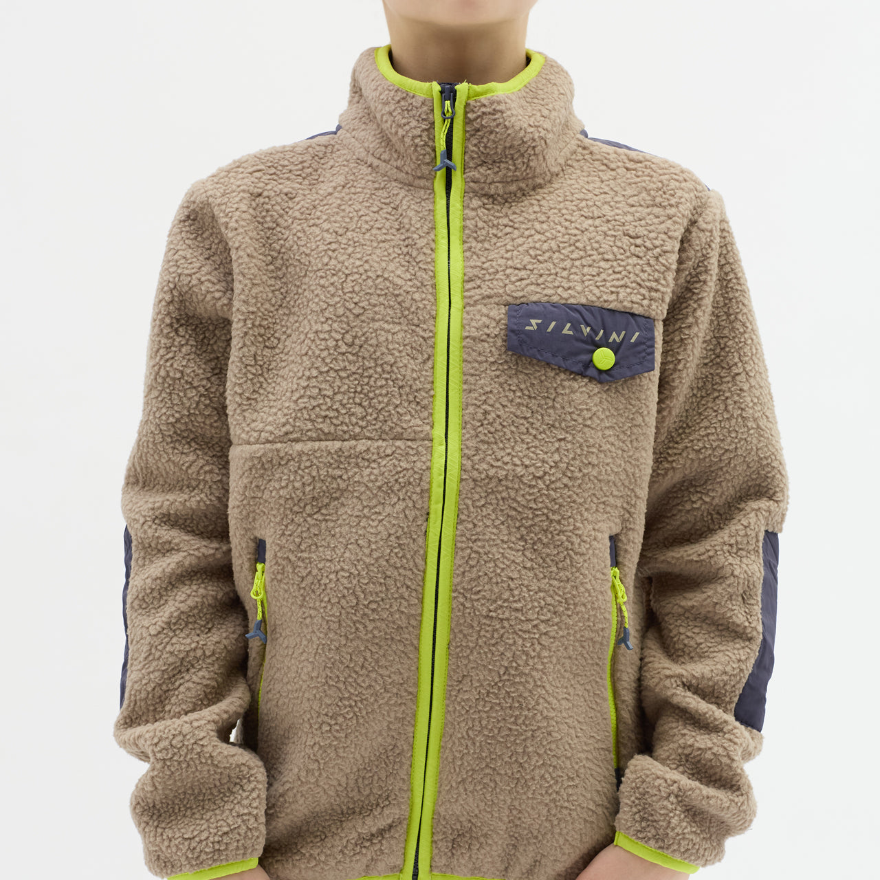 The Ortisei children’s fleece is made from recycled Termico Fleece, offering warmth, practical pockets, and reflective details for safe outdoor activities.