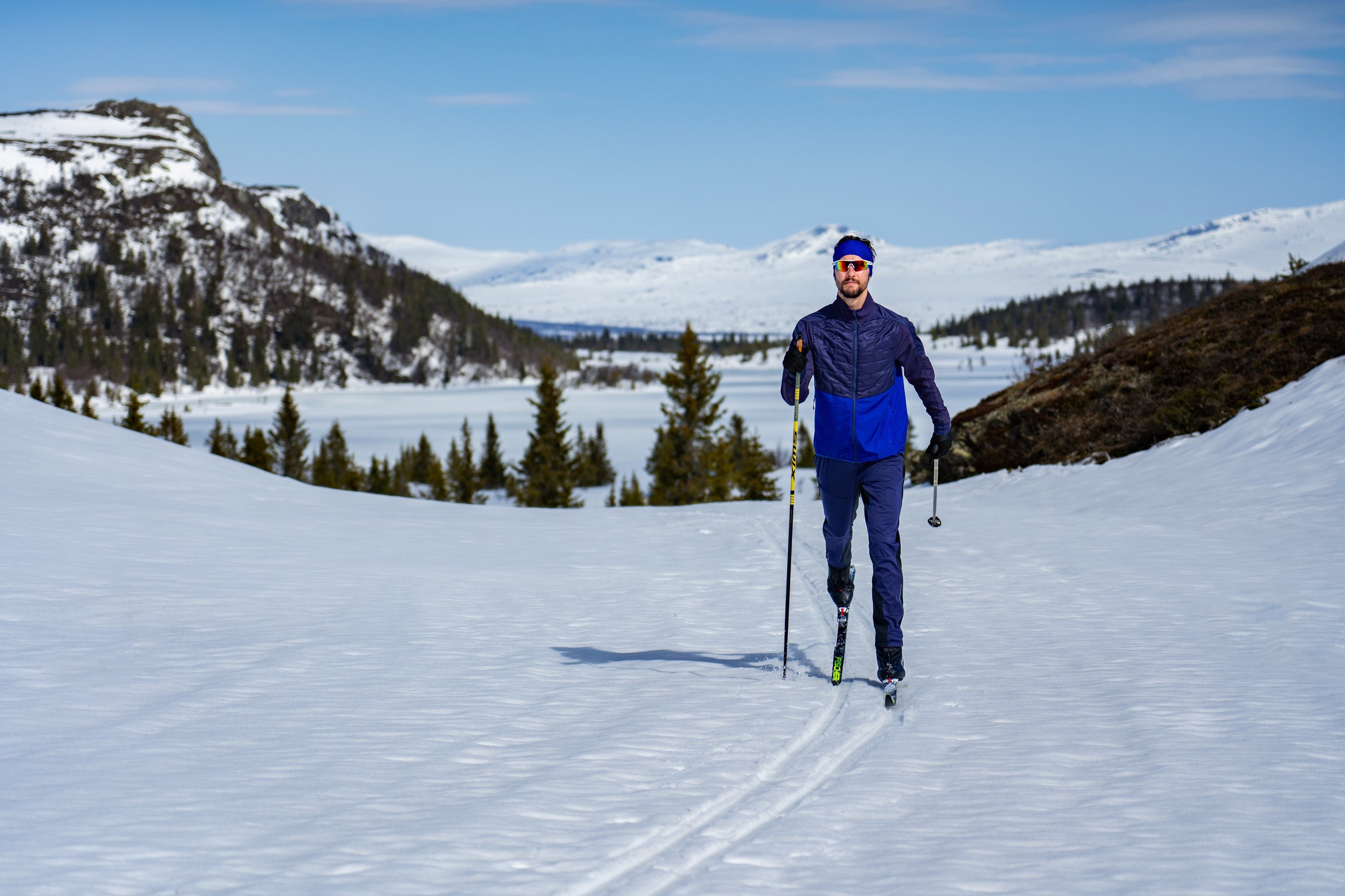 Men’s slim-fit cross-country ski jacket with windproof QuatroFLEX Shell, Primaloft® insulation, zip pockets, and reflective details. Lightweight, breathable, and comfortable.