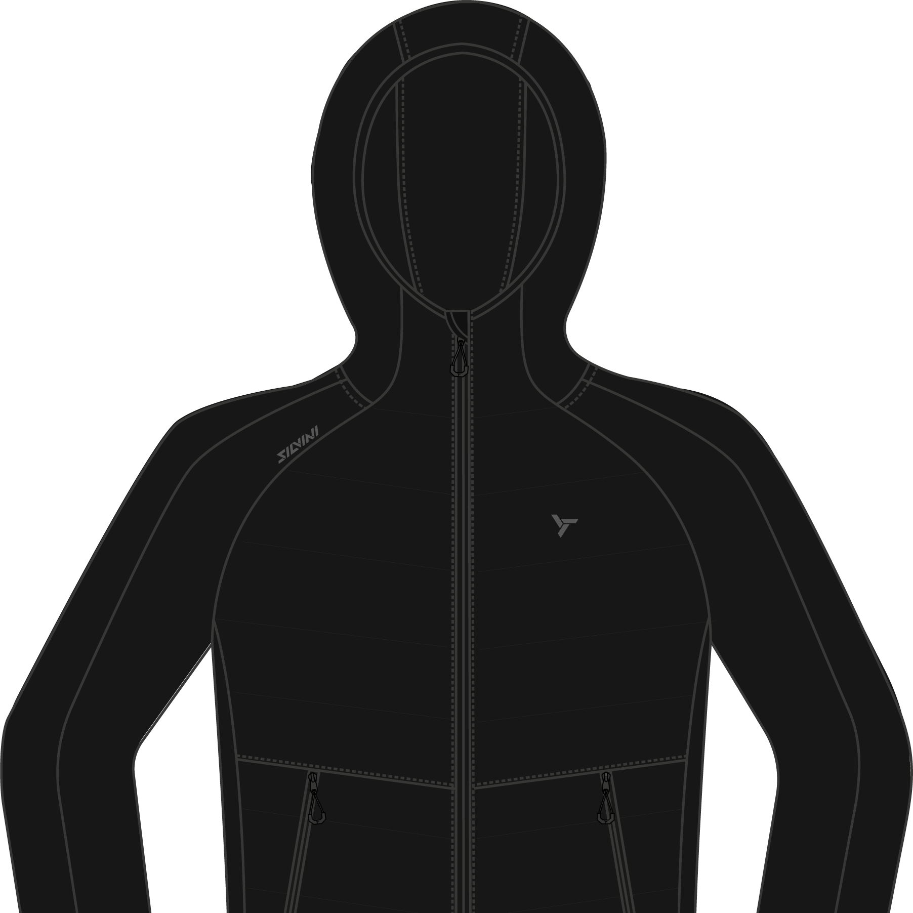 Dirilo is a men’s functional hoodie with a hood, designed with anatomical shaping to provide optimal comfort and freedom of movement during demanding outdoor activities. The hoodie is made from Powertherm, brushed on the inside, offering a soft feel and enhanced thermal insulation without adding bulk. The front is insulated with Primaloft® Silver Insulation Active 40 g, providing excellent warmth at minimal weight, keeping the body warm and dry even during intense activity in cold weather. Dirilo features anatomically shaped sleeves that follow the movement of the arms, ensuring a comfortable fit without restricting mobility. Practical details such as the hood, reflective elements, and an elastic drawstring hem increase functionality and safety during low visibility or challenging conditions. The hoodie is versatile – it can be worn as a lightweight outer layer in milder temperatures or as a mid-layer under a larger jacket for ski touring, cross-country skiing, or other outdoor sports. Thanks to the combination of lightweight insulation, elastic material, and thoughtful design details, Dirilo becomes a reliable companion for anyone seeking comfort, warmth, and functionality during outdoor activities. It is ideal for athletes who need a flexible layer that handles both dynamic movement and resting in cold or windy conditions.