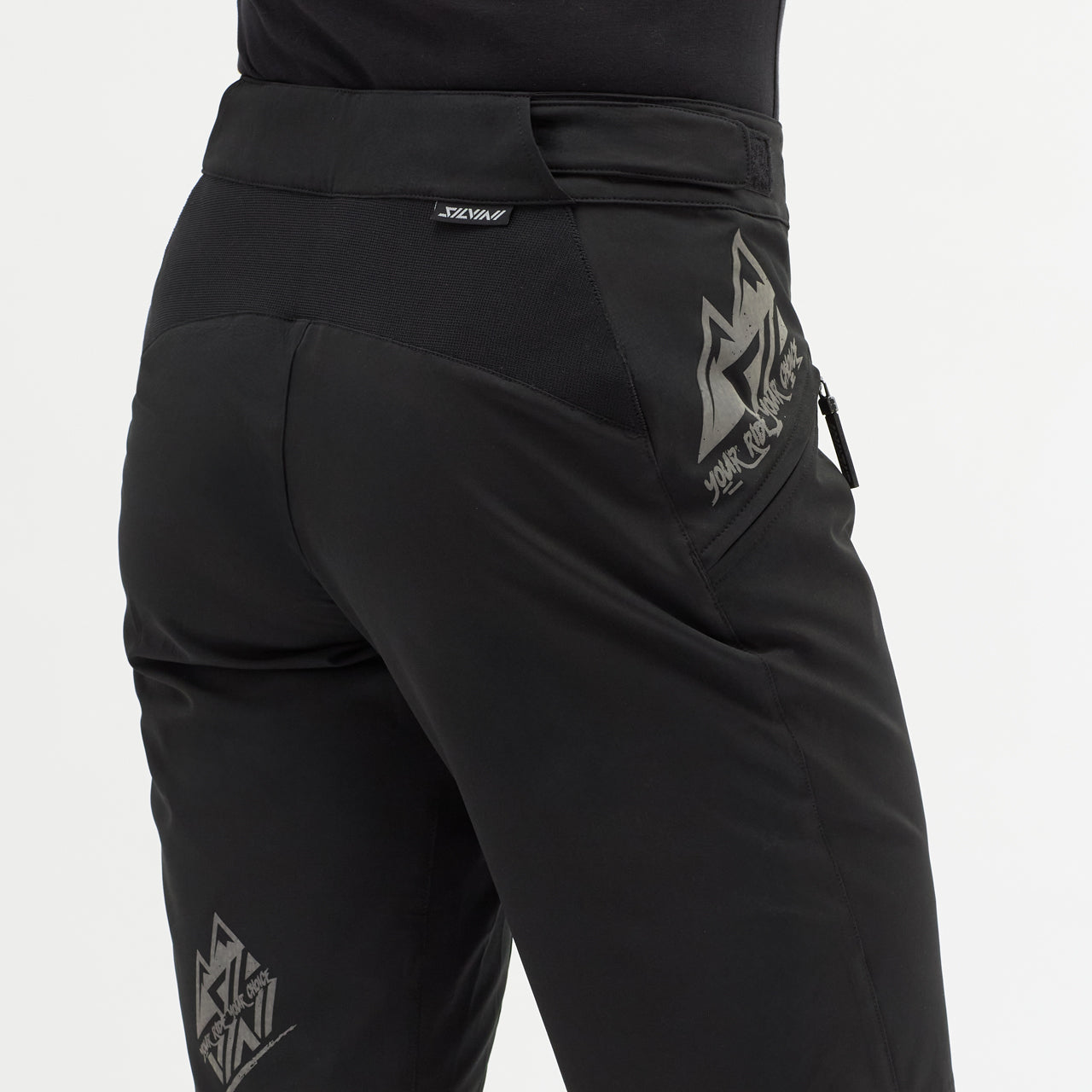 Women's enduro shorts made of flexible and breathable Woven stretch material. The cut of the shorts is loose and the back is raised. There is a velcro fastening at the waist and two zipped pockets on the sides.